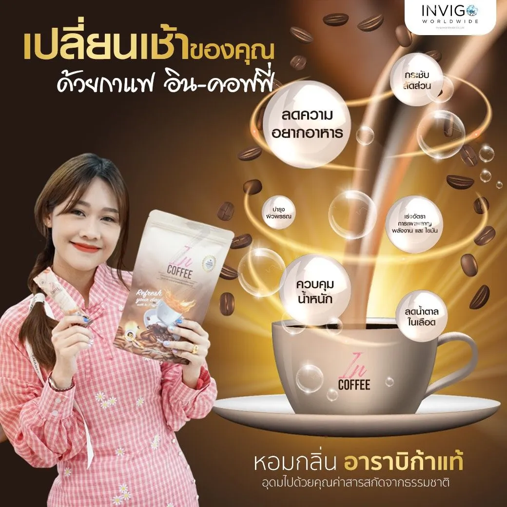 IN Coffee อิน คอฟฟี่ กาแฟลดน้ำหนัก กาแฟเพื่อสุขภาพ ดื่มง่ายทั้งร้อนและเย็น ฉีกซอง ชงกับน้ำร้อน น้ำเย็น ทานได้ทันที เบาสบายท้อง ไม่เวียนหัว